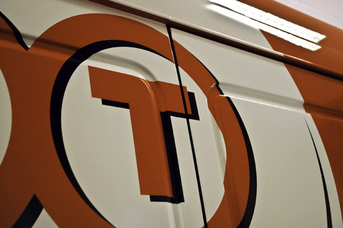 Waar uitgerekte folie op een licht gebogen ondergrond nog blijft zitten, kan deze in een hoekig profiel wél loslaten. Ook kleine randjes folie ‘omvouwen’ bij bijvoorbeeld een portier of motorkap, is een risico. Dat omgeplakte randje van een paar milimeter ziet er tijdens de montage meestal nog prima uit maar kan met verloop van tijd loslaten en ‘recht’ gaan staan. Ook bij het monteren van over diepe profielen gaat het soms mis. Vaak is hier de oorzaak dat de verkeerde infohn technieken zijn toegepast. Tijdens de training ‘Carwraptechniek’ leer je de in projecten uitontwikkelde applicatie technieken. Je kunt je voorstellen dat na projecten waar je honderden keren door de profielen van o.a. MB Sprinters heen hebt gewrapt de mooiste, snelste en veiligste infohn-technieken wel naar boven zijn gekomen.