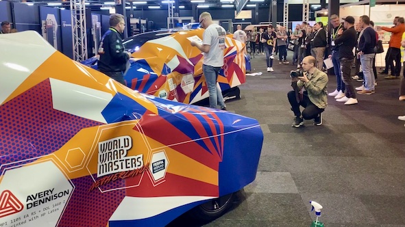 De woensdag was de dag voor de World Wrap Masters Netherlands. Dat vergde een loeistrakke organisatie. Want hoe zorg je er voor dat er zoveel mogelijk van het mooie design van Marcel Vermeulen gewrapt kan worden.
