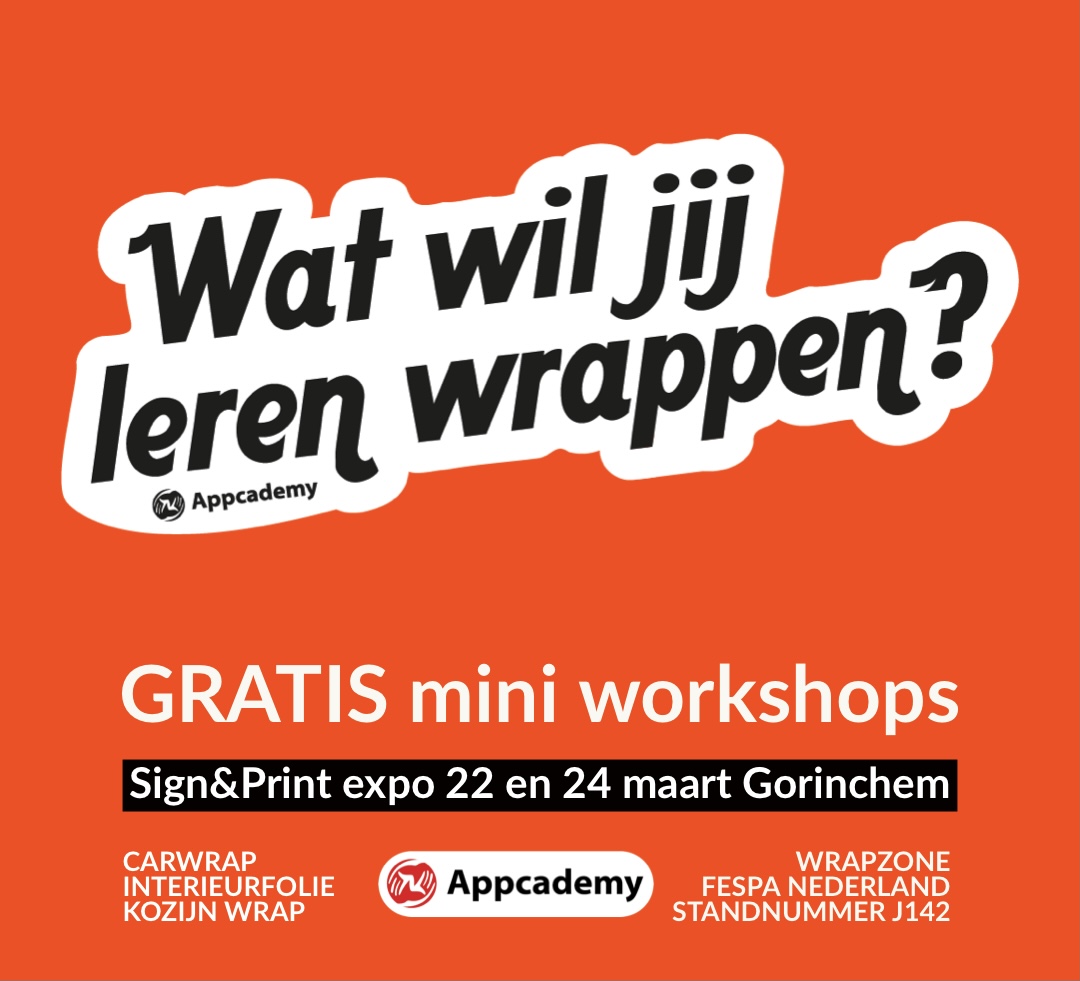 Kennis & inspiratieDe beste techniek voor wrappen van profielenAlles wat je moet weten over SLIM-subsidieKeuken wrappen? 15 vragen en antwoorden!Folie onthechting voorkomen? 10 tips!Signmaker cursusNieuw Sign personeelCursus keuken wrappen?10 tips voor het snijden van folieOntvetten bij foliemontage – stappenplanGratis wrappen op de Visualize ExpoWorld Wrap Masters Netherlands 2025Interieurfolie aanbrengen – gebruik hecht primerInterview BrunschotKitchen wrap with interior filmProfessioneel profielen wrappenLeren carwrappen in twee dagen? Kan dat?Houd bij carwrappen rekening met het foliegeheugenVerslag World Wrap Masters Netherlands 2024World Wrap Masters Netherlands 2024Applicatietips voor dunne folieOpening grootste trainingscentrum in Europa bij Vink VTSkeukens wrappen met interieurfolieHoe zorg je dat klanten bij jouw bedrijf kopen?Hoe herken je een “Wrapmaster”?Foliehechting heeft te maken met de ondergrondGeld verdienen met carwrappingWorld Wrap Masters Netherlands 2023Foliemontage-Tips: Ondergronden ontvettenWelke lijm voor naadloos fotobehang?Afwerktechnieken voor carwrap profswrappen met Paint Protection Film (PPF)Vernieuwende carwrap techniekenAlle Appcademy artikelen in de vakbladenLeer, hout, beton.. interieurfolie is hot!Windowfilm op gebouwenWat is de beste carwrapfolie?carwrapping – essentiële rakel techniekGave breinfeitjes waardoor we makkelijker verkopenOp zoek naar een goede foliemonteur?Snelle metamorphose met naadloos behang!Carwrappen met heatgun of infrarood?Demontage van folie, óók een vak!Wat is de fijnste rakel (of squeeguee of aanbrengspatel)?Hoe voorkom je luchtbellen en kreukels?Veelgestelde vragen van schilders over Facadefilm – Deel 2Veelgestelde vragen van schilders over Facadefilm – Deel 1Het leukste wrap event van 2022Gratis Mini workshops op Sign&Print ExpoWorld Wrap Masters Netherlands 202210 gouden basisregels voor carwrappersWrappen in de vastgoedmarkt!Een Facadefilm project, wat nu?Officieel Kort Beroeps onderwijs – CRKBO geregistreerdInterieurfolie trends 2023Nieuw foliemontage personeelIs je bedrijfsstrategie up-to-date?Verkooptips in tijden van CoronaAppcademy training via Stichting mijn CarriereOld School carwrapHé! Snij je niet in de lak?Carwrap / Interieurfolie / Raamfolie / Beletteringen /PPF / Fotobehang / Facadefilm / Ondernemen / Bekijk alle trainingenVolg jij ons al op insta?Wij delen kennis, inspiratie en groepsfoto’s. Volgen op Instagram Appcademy werkt samen met distributeurs,leveranciers, vakbladen en brancheorganisaties
