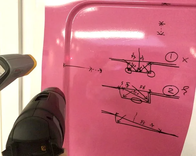 Deze techniek dateert volgens zeggen uit de jaren ‘80/’90 van de vorige eeuw. De folies van toen werden minder ver uitgerekt, ook omdat het ‘dood föhnen’ nog niet was uitgevonden. Foliefabrikanten hebben sindsdien niet stilgestaan met de ontwikkeling van (carwrap)folies. Als je werkt met een ver uitrekbare carwrapfolie is deze techniek dus eigenlijk niet nodig.